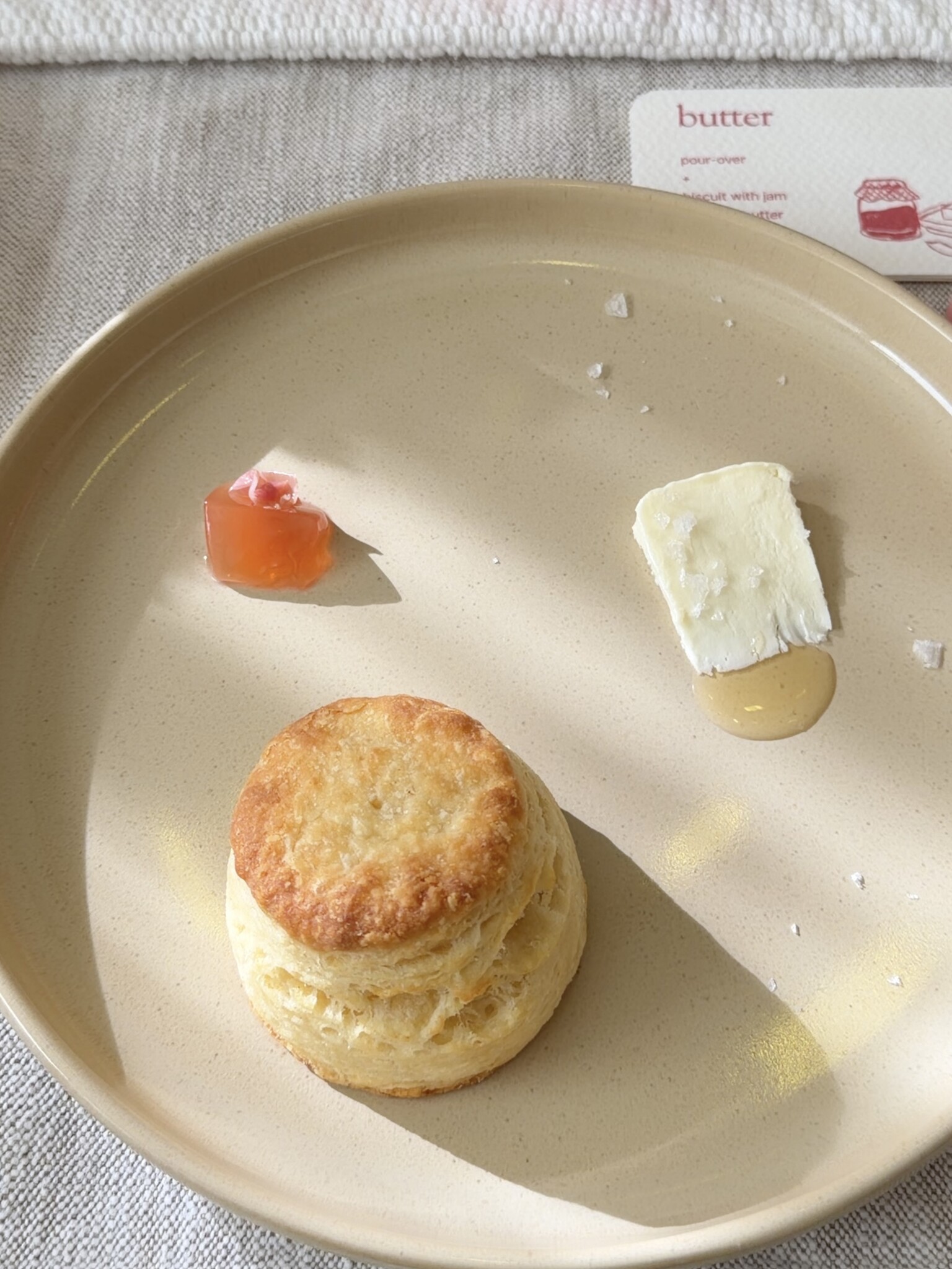 Butter 코스는 Pour-over 커피와 비스킷으로 구성되어, 재료의 본질이 가장 또렷하게 느껴지는 순간이었다. 완벽한 비스킷을 만들기 위해 오랜 시간 연구해 왔다는 Josh의 설명처럼, 섬세한 결의 비스킷은 watermelon rose jelly와 함께했을 때 특히 조화가 좋았다. 커피 역시 과하지 않게 곁들여지며, 이 코스의 균형을 깔끔하게 완성해주었다. Awaken 코스에서는 에스프레소와 토스트가 등장하며 전체 흐름에 확실한 리듬을 더했다. Josh의 첫 주방 경험이 시작된 곳에서 마셨던 한 잔의 에스프레소에서 영감을 받은 이 코스는, 기존에 떠올리기 쉬운 강하고 날카로운 에스프레소와는 달리 부드럽고 달콤한 인상이 중심이었다. 에스프레소는 그대로 즐기는 것뿐만 아니라 얼음을 넣거나 우유를 더해 취향에 맞게 마실 수 있어, 같은 커피를 여러 방식으로 경험할 수 있다는 점도 흥미로웠다. 함께 나온 콘 토핑의 토스트는 고소한 풍미와 식감으로 커피와 자연스럽게 어우러졌다.