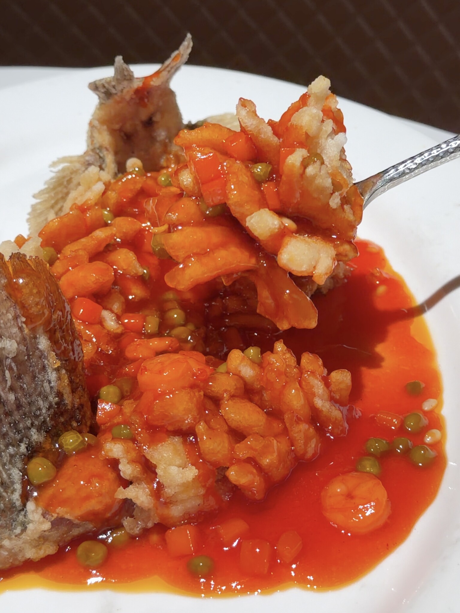 Array 36 Signature Braised Pork는 가장 안정감 있게 즐길 수 있었던 메뉴였다. 윤기 있게 졸여진 돼지고기는 부드럽게 풀어지며 진한 풍미를 전했고, 양념은 달거나 짜지 않고 균형이 잘 잡혀 있었다. 밥과 함께 곁들이기에도 잘 어울리는 구성으로, 테이블 위에서 자연스럽게 손이 자주 가는 메뉴였다. King Crab Meat Avocado Salad는 플레이팅부터 우아한 인상을 주었다. 신선한 킹크랩 살과 아보카도의 조합이 깔끔하게 어우러졌고, 전체적으로 무겁지 않아 메인 요리들 사이에서 리프레시 역할을 해주었다. 재료 본연의 맛이 잘 살아 있어 가볍지만 완성도 높은 한 접시였다. Deep Fry Whole Fish in Sweet Sour Sauce는 큼직한 사이즈의 생선이 통째로 튀겨져 나와 테이블에 놓이는 순간부터 시선을 끌었다. 서빙과 함께 직원이 직접 새콤달콤한 소스를 부어주는 방식이라, 소스가 생선 위로 퍼지는 모습까지 하나의 퍼포먼스처럼 느껴졌다. 겉은 바삭하고 속은 촉촉하게 잘 유지되어 있었고, 소스 역시 과하지 않아 생선 본연의 풍미를 해치지 않았다. 여러 사람이 함께 나눠 먹기에도 좋았고, 플레이팅과 맛 모두에서 만족도가 높은 메뉴였다.