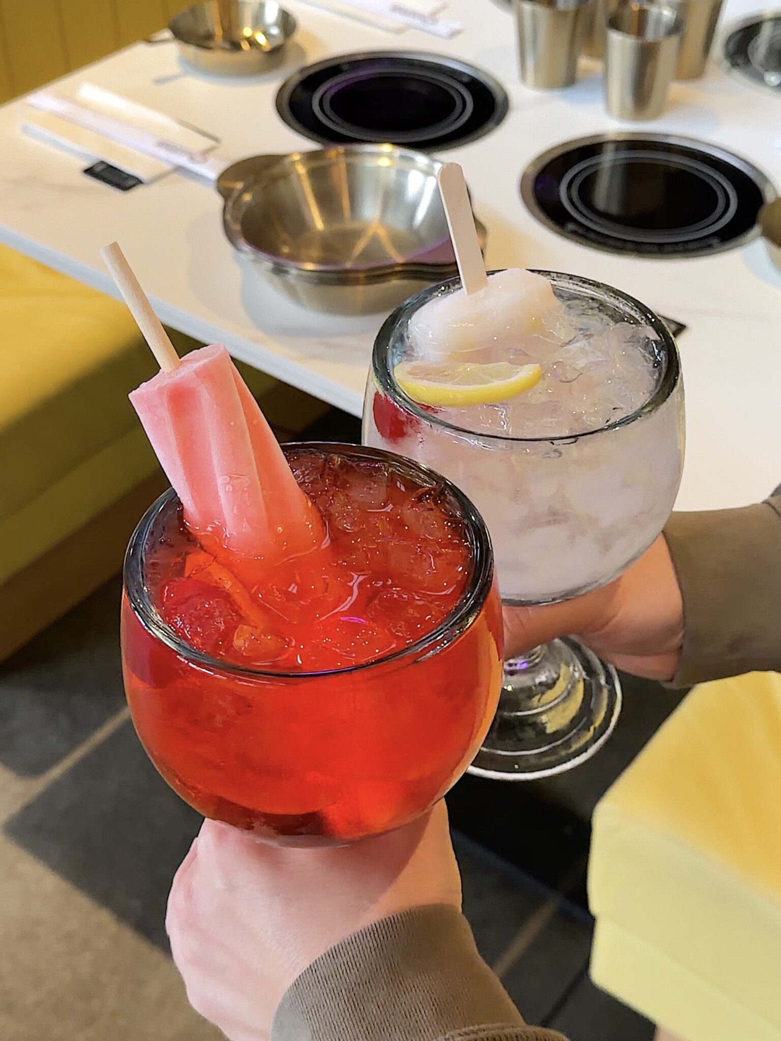 식사 중에는 Soju Fishbowl Cocktail도 함께 즐겨봤다. Screwkiss와 Snowju 두 가지를 마셔봤는데, 넉넉한 사이즈에 아이스크림이 더해져 비주얼부터 눈길을 끌었다. 시원하고 상큼한 맛으로 샤부샤부의 따뜻한 여운을 산뜻하게 정리해주어 잘 어울렸고, 디저트로는 Mango와 Thai Tea 아이스크림을 곁들여 가볍게 마무리하기 좋았다.
