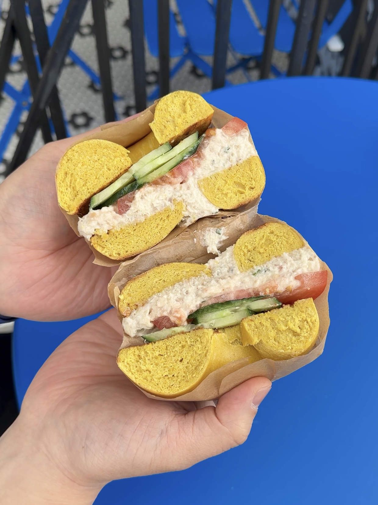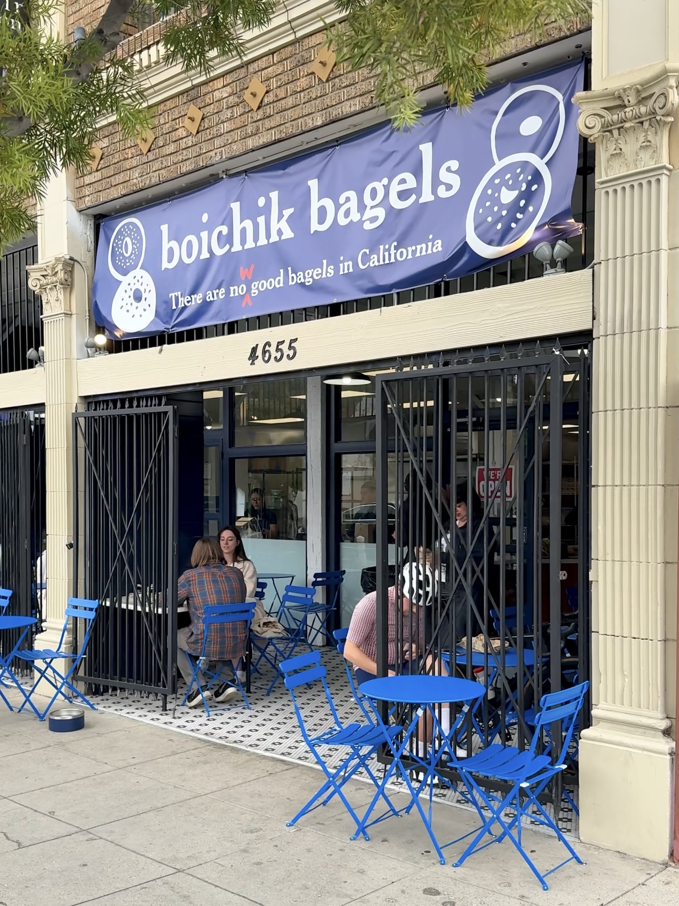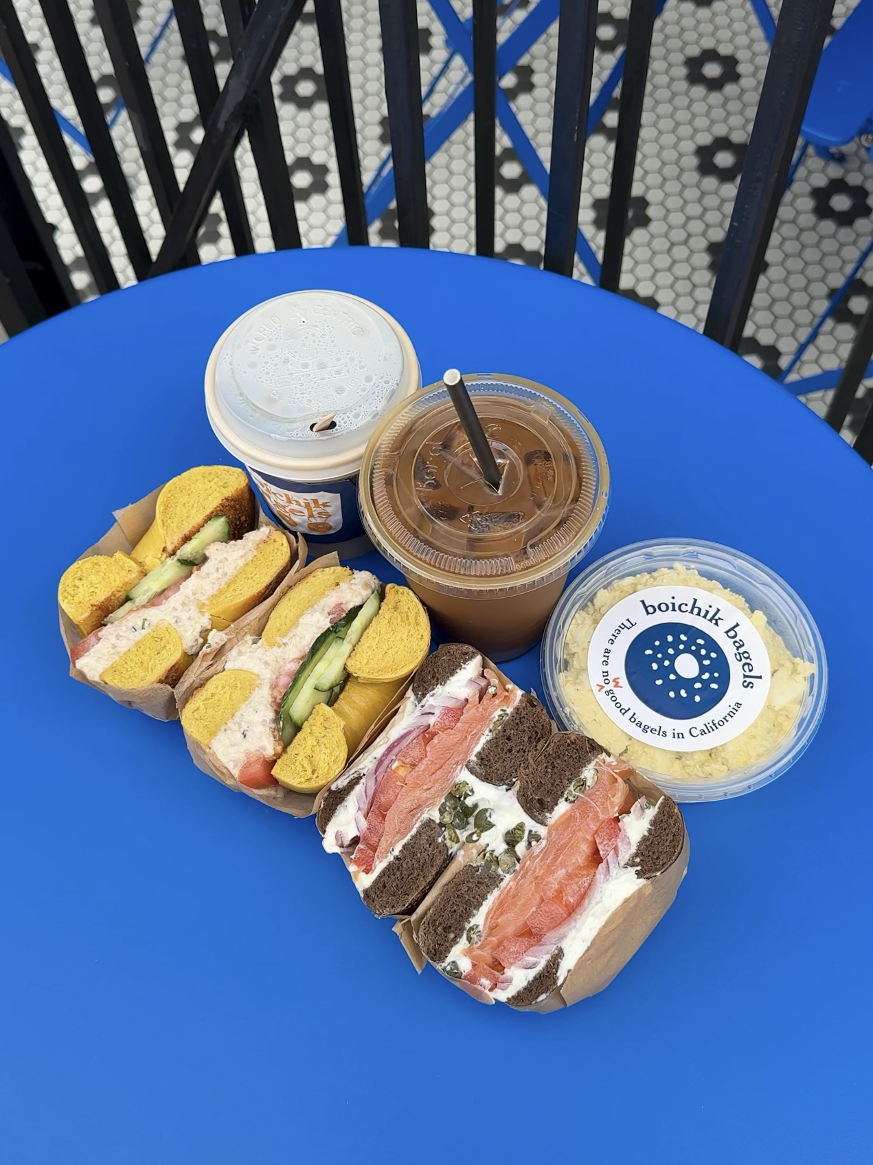 우리는 Los Feliz 지점에 방문했는데, 최근에는 이 지점에 이어 다운타운에도 새 매장을 오픈했다고 하니 가까운 지점으로 들러보는 것도 좋을 것 같다. 이곳은 주문 후 외부에 마련된 테이블에서 베이글을 즐길 수 있었고, 실내 공간은 없지만 넉넉하게 배치된 실외 좌석 덕분에 불편함 없이 식사할 수 있었다. 우리는 ‘The Classic’을 Pumpernickel 베이글로, ‘The Mensch’를 Egg 베이글로 골랐고, Egg Salad와 커피도 함께 주문해봤다.