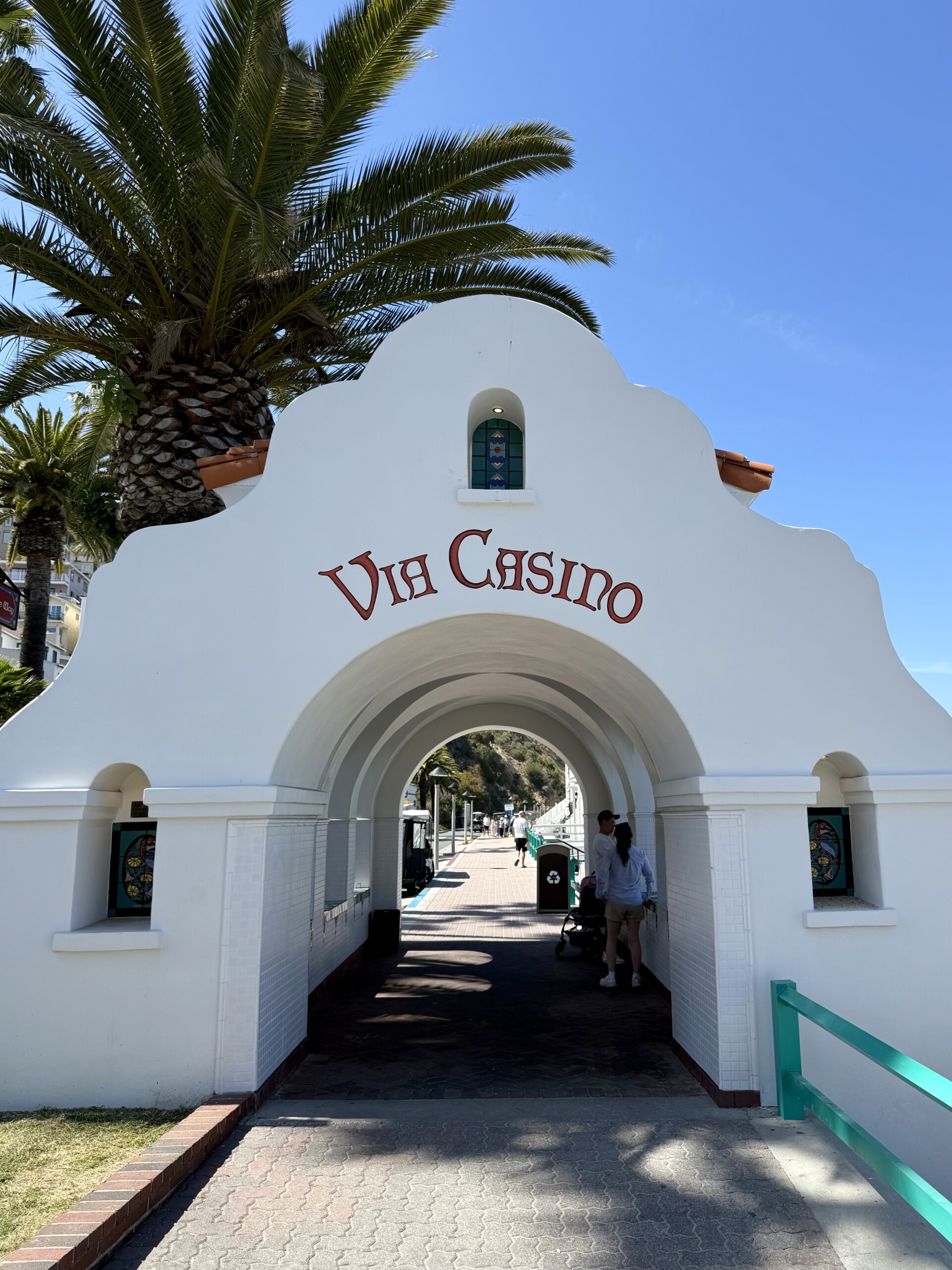 Casino를 향해 해안가를 따라 걷다 보면, ‘Via Casino’라고 적힌 작은 터널을 지나게 된다. 이 아치형 통로는 양옆으로 아기자기한 창문이 나 있고, 알록달록한 타일 장식이 더해져 있어 산타 카탈리나 해변을 배경으로 예쁜 사진을 남기기에 딱 좋은 포인트다. 길 자체는 짧지만, 터널을 통과하며 마주하는 바다 풍경과 건물의 디테일이 어우러져 특별한 순간을 만들어준다. Catalina Casino를 향하는 길목에서, 이곳의 감성을 담아 사진 한 장 남겨보는 것도 좋은 추억이 될 것 같다.