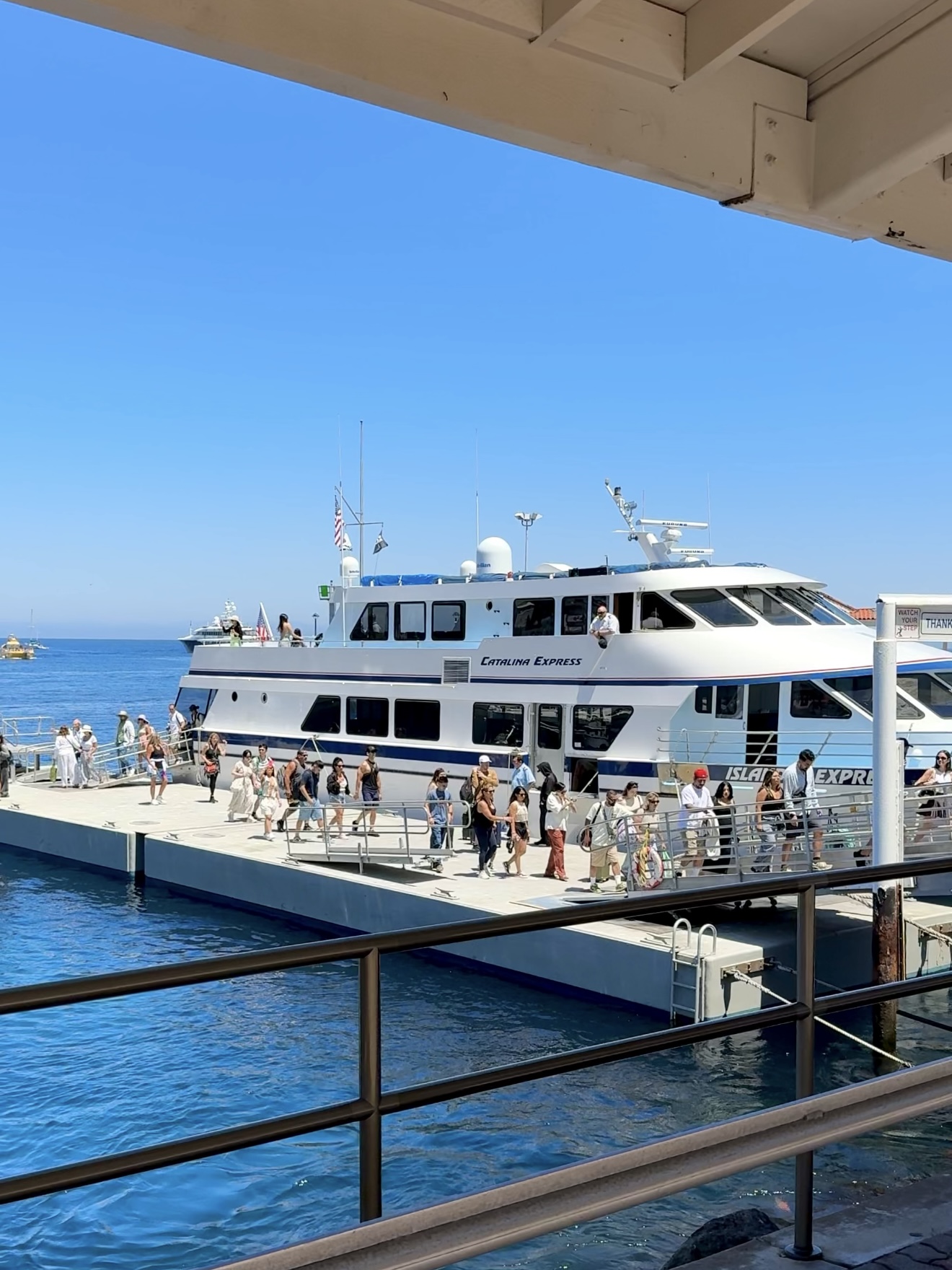 Catalina Island에 가기 위해서는 배를 타고 들어가야 하는데, 페리는 San Pedro, Long Beach, Dana Point 항구에서 매일 최대 30회 정도 운항한다. 티켓은 Catalina Express 웹사이트를 통해 예매할 수 있으며, 특히 주말이나 성수기에는 빠르게 매진되는 경우가 많아 미리 예약하는 것이 좋다. 터미널에는 출발 최소 1시간 전에 도착하는 것을 추천하며, 탑승은 보통 출발 30분 전부터 가능하다. 배의 야외 좌석은 선착순으로 이용할 수 있는데, 인기가 많아 금방 자리가 차는 편이다. 탁 트인 바다 풍경을 여유롭게 즐기고 싶다면, 조금 일찍 도착해 미리 줄을 서는 것을 추천한다.(Catalina Express 링크)
