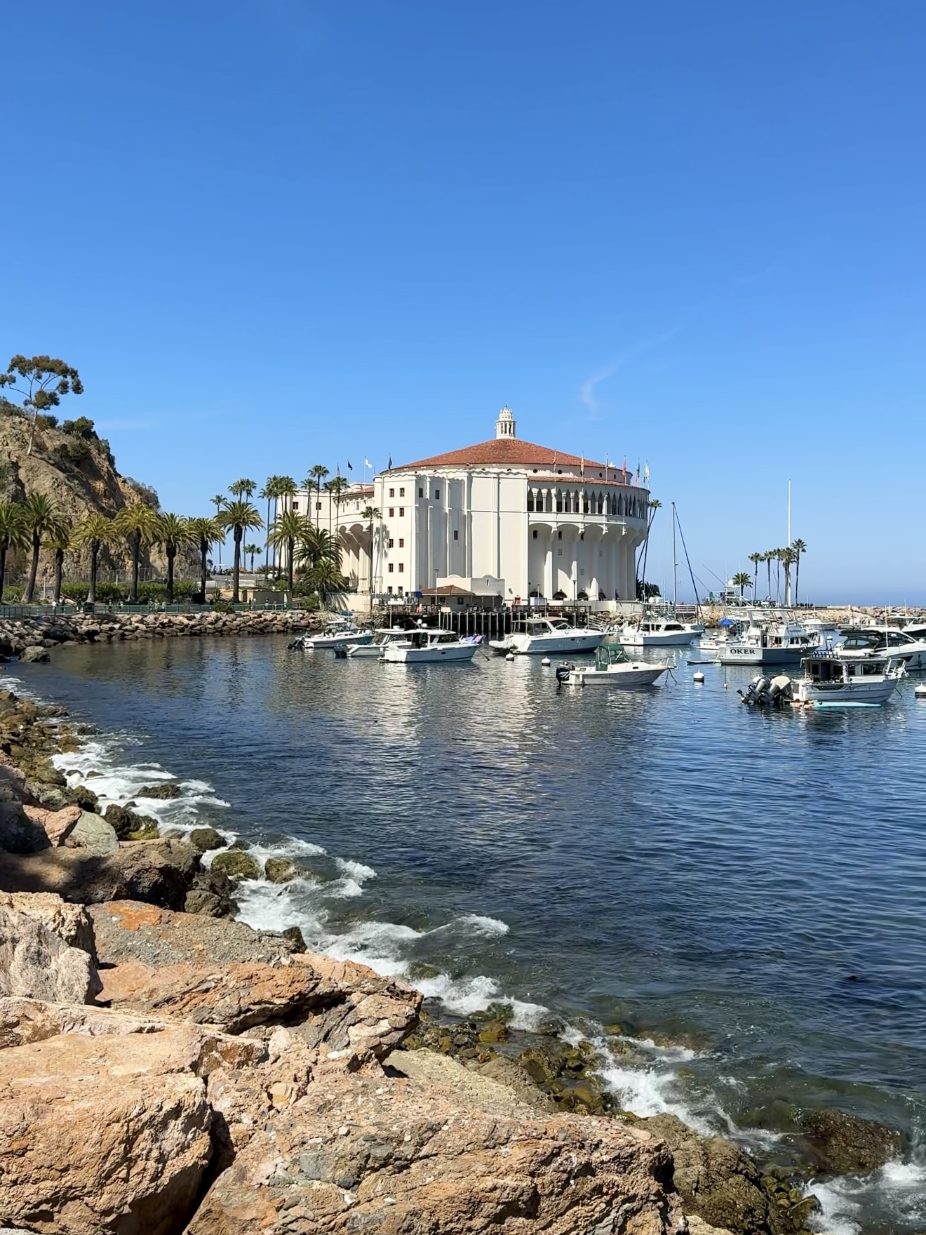 카지노에 도착하면 티켓 예약을 확인한 후 내부를 자유롭게 둘러볼 수 있는데, 우리는 사전에 온라인으로 예매했으며 성인 기준 입장료는 $19.5였다. 아래층에는 영화 상영을 위해 특별히 설계된 고전적인 극장이 자리하고 있고, 위층으로 올라가면 한때 수천 명이 빅 밴드 음악에 맞춰 밤새 춤을 추던 세계 최대 규모의 원형 볼룸이 펼쳐진다. 복도를 따라 걸어가는 동안에는 벽이 뚫려 있는 구조 덕분에 탁 트인 바다 풍경이 자연스럽게 시야에 들어와 인상적이었다. 건물 내부는 물론 외관까지도 잘 보존되어 있어, 섬의 오랜 역사와 문화가 자연스럽게 전해지는 느낌이었다. Catalina Island의 과거, 독특한 건축미, 그리고 바다를 배경으로 한 멋진 풍경까지 모두 한자리에서 만날 수 있는 의미 있는 공간이었다. (Catalina Casino 링크)