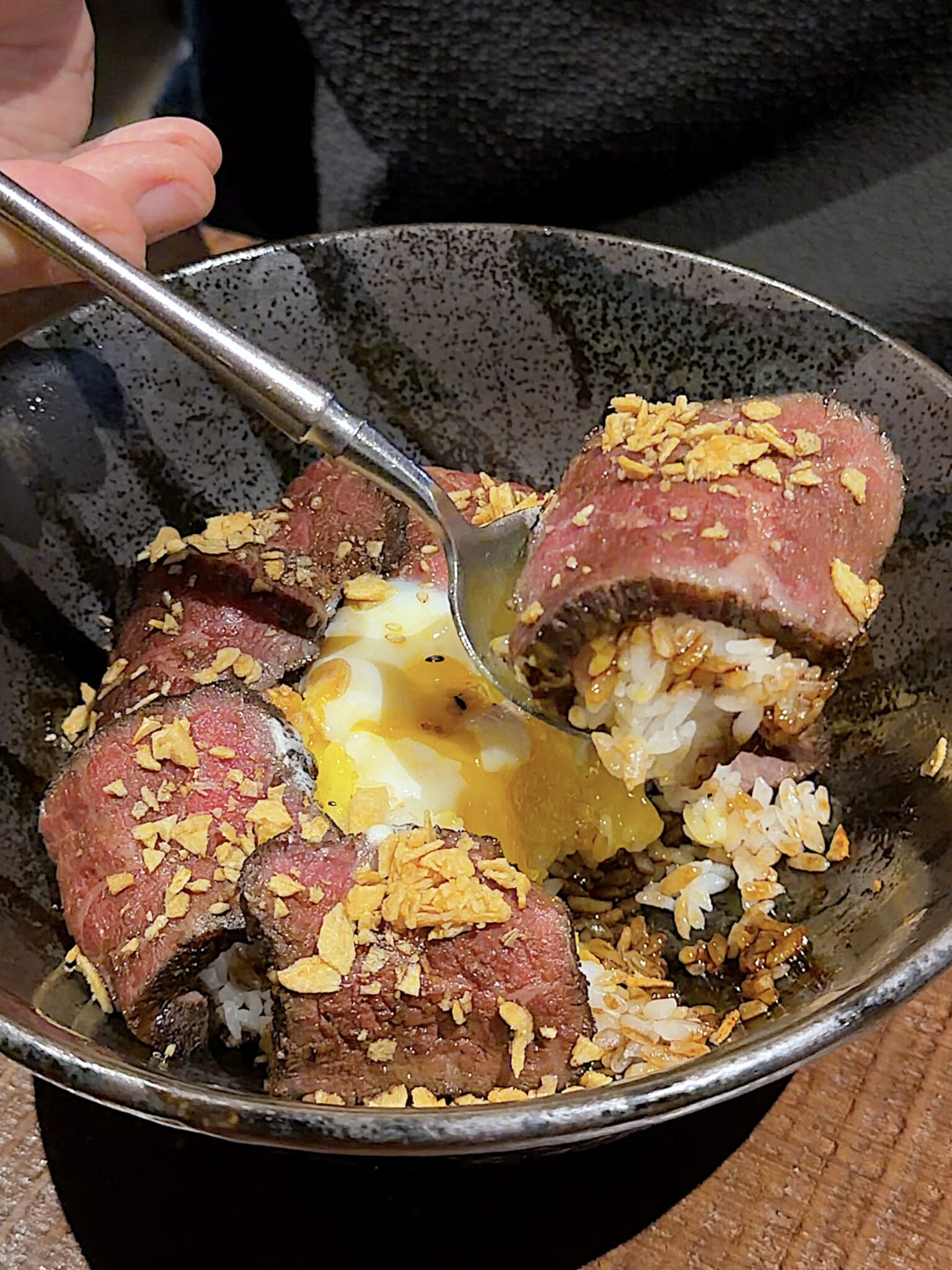 Wagyu Steak Rice Bowl은 얇게 썬 와규 위에 바삭하게 튀긴 마늘이 더해져 식감의 대비가 인상적이었다. 여기에 곁들여진 Yakiniku 소스가 고기의 풍미를 자연스럽게 끌어올려 전체적인 밸런스를 잡아주었다. Stone Pot Wagyu Hambagu는 부드러운 식감이 중심이 되었고, 돌솥에 담겨 나와 밥의 아래쪽은 살짝 바삭하게 눌어 식감의 재미를 더했다. Udon Know Me는 카레 우동으로, 진한 카레 국물에 소고기가 어우러져 비교적 든든하게 즐길 수 있는 구성이었다.