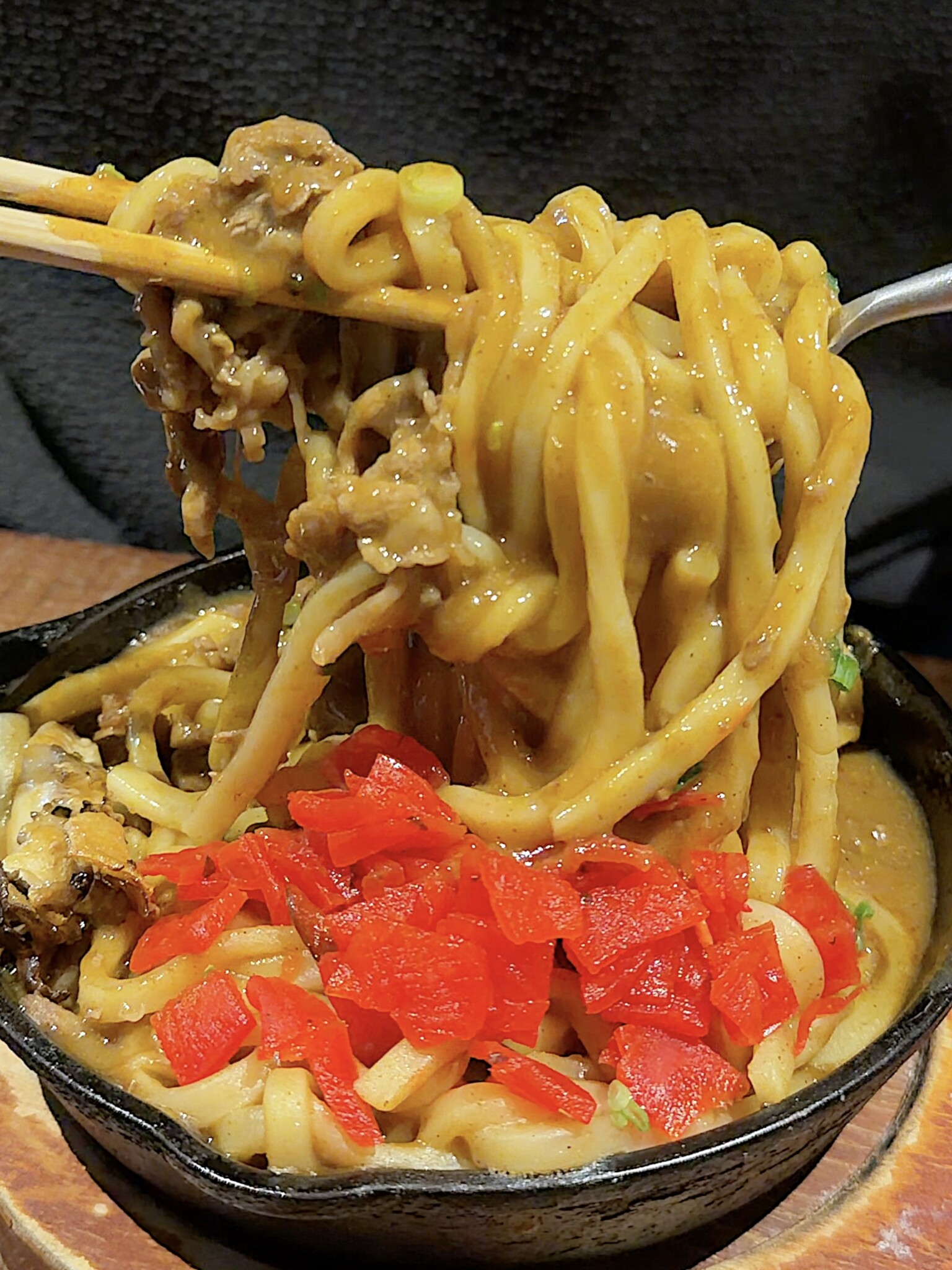 이번 방문에서는 Roasted Duck Curry를 중심으로 Wagyu Steak Rice Bowl, Stone Pot Wagyu Hambagu, Udon Know Me, Curry Fries, Cucumber Salad까지 함께 주문해봤다. Roasted Duck Curry는 큰 접시에 사이드 반찬과 소스가 함께 구성되어 나왔고, 뚜껑을 여는 순간 연기가 퍼지며 시각적인 인상도 더해졌다. 카레는 과하게 자극적이지 않고 깊이감 있는 맛이 중심이 되었으며, 오리는 담백하면서도 적당히 기름져 부드러운 식감을 보여줬다. 바삭하게 구워진 겉면과 촉촉한 속살이 자연스럽게 어우러져 비교적 묵직한 한 끼를 완성해줬다.