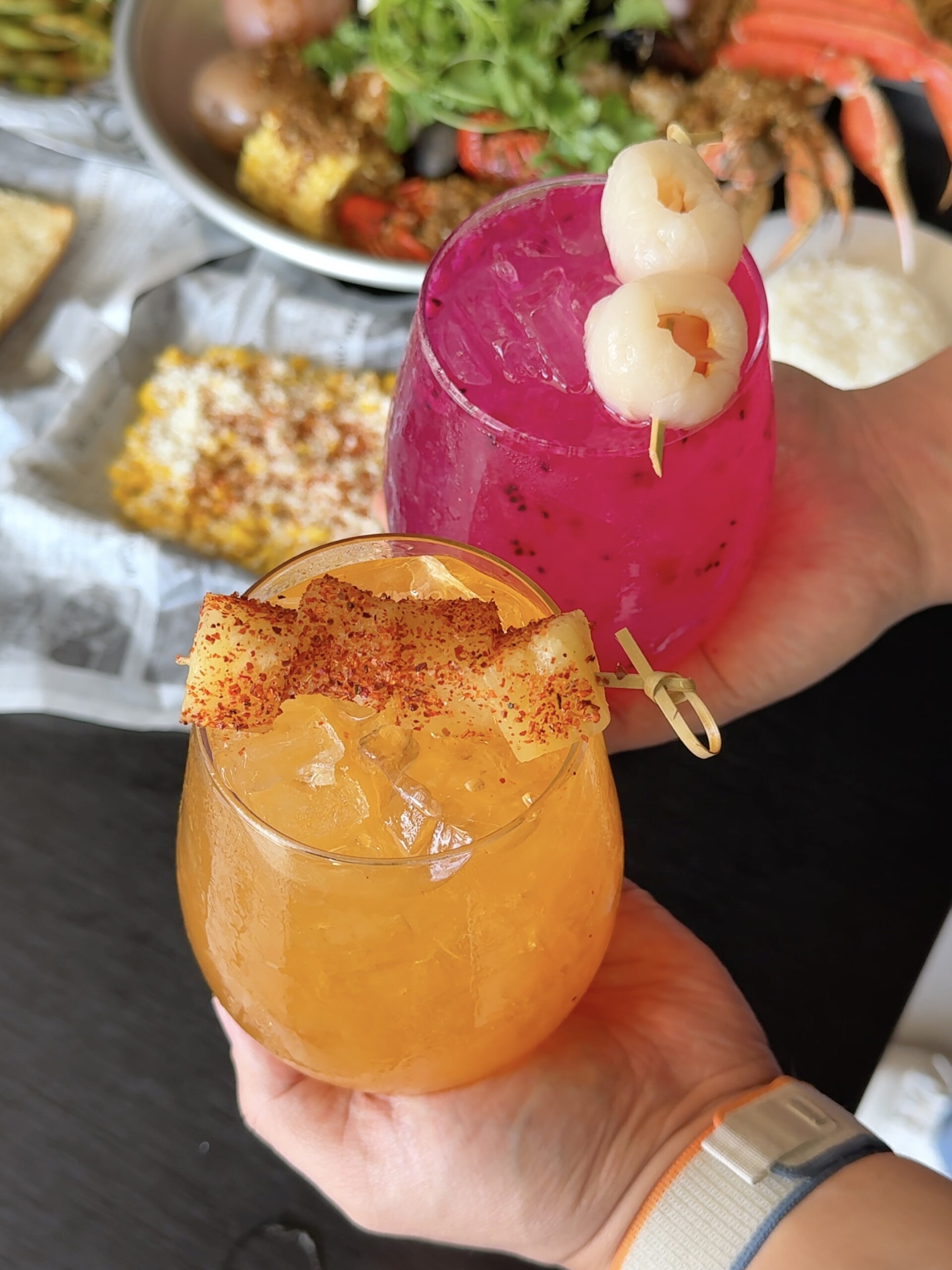 사이드 메뉴들 또한 전체 식사의 만족도를 높여주는 요소였다. 특히 케이준 프라이즈는 바삭하게 튀겨져 느끼하지 않았고, 양념이 고르게 배어 있어 해산물 사이사이 가볍게 곁들이기 좋았다. 갈릭 누들은 향긋한 마늘 풍미와 고소한 오일의 조화가 인상적이었으며, 갈릭 브레드는 겉은 바삭하고 속은 촉촉해 식사의 마무리로 곁들이기에 딱 좋았다. 해산물과 함께 즐기기 좋은 칵테일도 다양하게 준비되어 있었는데, 술을 마시지 않는 사람들을 위한 Mocktail 옵션이 있다는 점도 만족스러웠다. 우리가 선택한 Dragon Fruit Lychee는 상큼한 과일 풍미가 진하게 느껴져 식사 중간 입안을 깔끔하게 정리해주는 느낌이었고, Pineapple Mango Rum Punch는 달콤한 열대 과일 향에 은은한 바디감이 어우러져 해산물과의 조화가 좋았다.