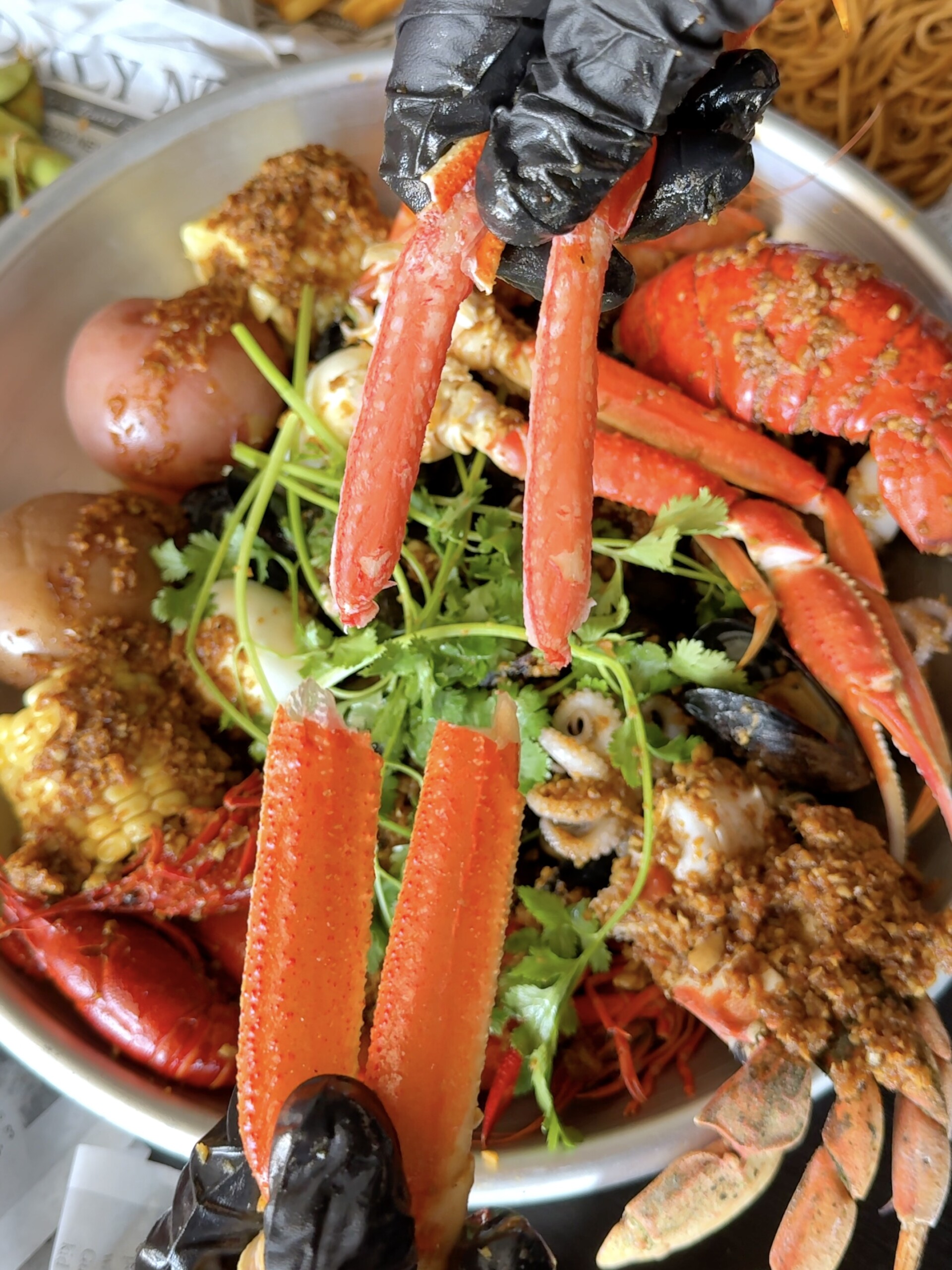 우리는 이번 방문에서 Tier 2를 선택해 다양한 해산물을 골고루 맛볼 수 있었는데, 특히 무제한으로 제공되는 오이스터는 생각보다 훨씬 신선하고 풍미가 좋아 인상적이었다. 통통한 새우와 쫄깃한 문어도 만족스러웠는데, 그 중 스노우 크랩은 적당한 크기에 살이 꽉 차 있어 손이 자꾸 가는 메뉴였다. 촉촉하면서도 달큰한 맛이 잘 살아 있었고 소스에 찍어먹으면 또 다른 풍미가 더해져 마지막까지 질리지 않게 즐길 수 있었다. 모든 해산물에 시즈닝이 잘 배어 있어, 해산물 본연의 맛과 매콤한 양념의 조화가 훌륭했다.