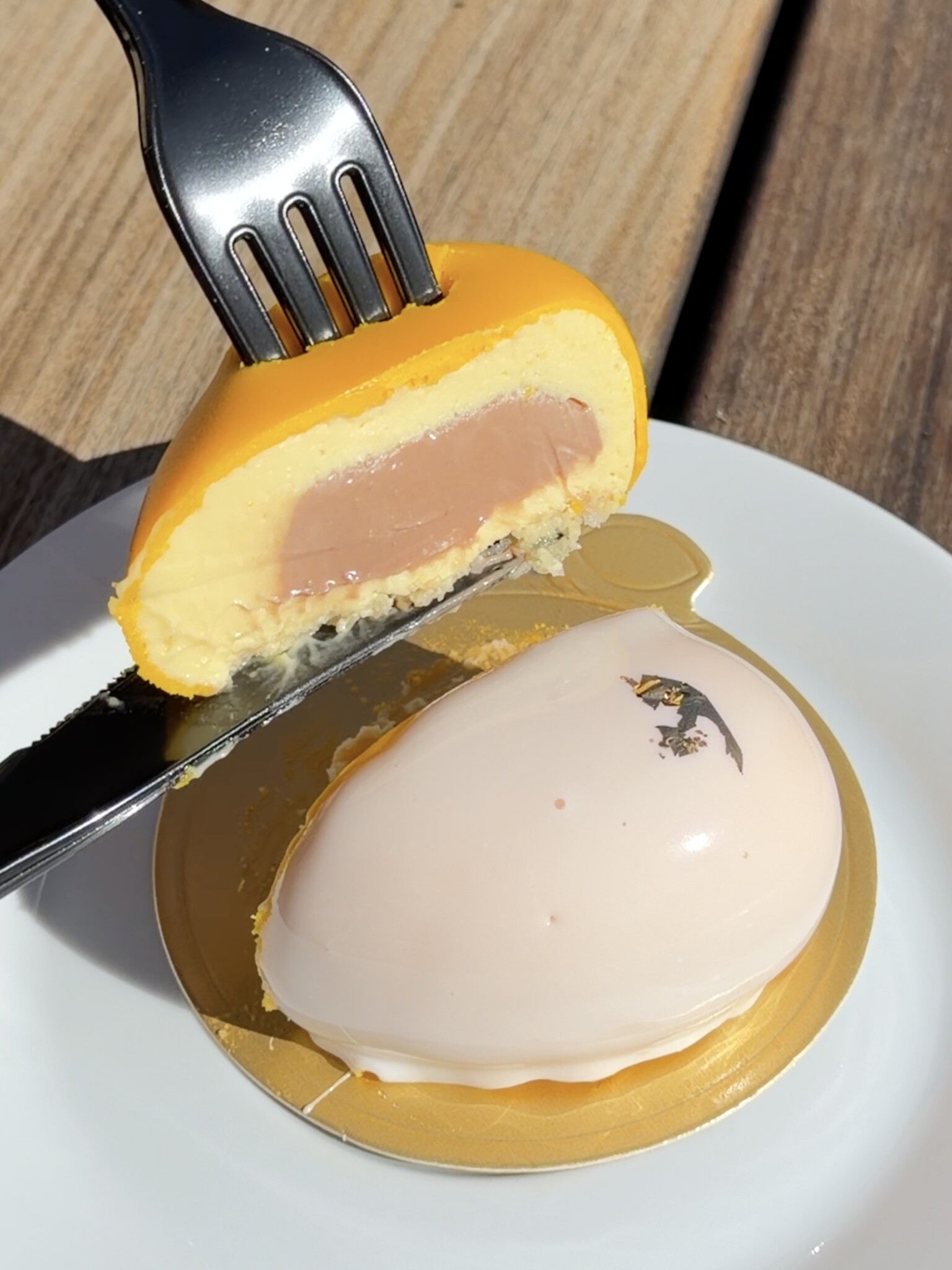 Baguette Prosciutto & Brie는 짭조름한 프로슈토와 부드러운 브리 치즈가 바게트와 잘 어우러졌고, 과하지 않은 밸런스로 구성되어 있었다. 달콤한 디저트 사이에서 자연스럽게 중심을 잡아주는 메뉴였으며, 브런치로 가볍게 즐기기에도 잘 어울리는 구성이었다. 음료와 디저트는 각기 다른 매력을 보여줬다. Iced Coco Pebbels Latte는 진한 초코 시리얼의 달콤한 풍미와 커피가 잘 어우러져 비교적 부드럽게 마시기 좋았으며, Double Freddo Espresso는 깔끔하고 또렷한 맛이 중심이 되어 디저트와 함께 곁들이기에도 부담이 없었다. Amadee는 망고 케이크로, 상큼하면서도 부드러운 질감이 인상적이었고 망고의 풍미가 비교적 진하게 느껴졌다.