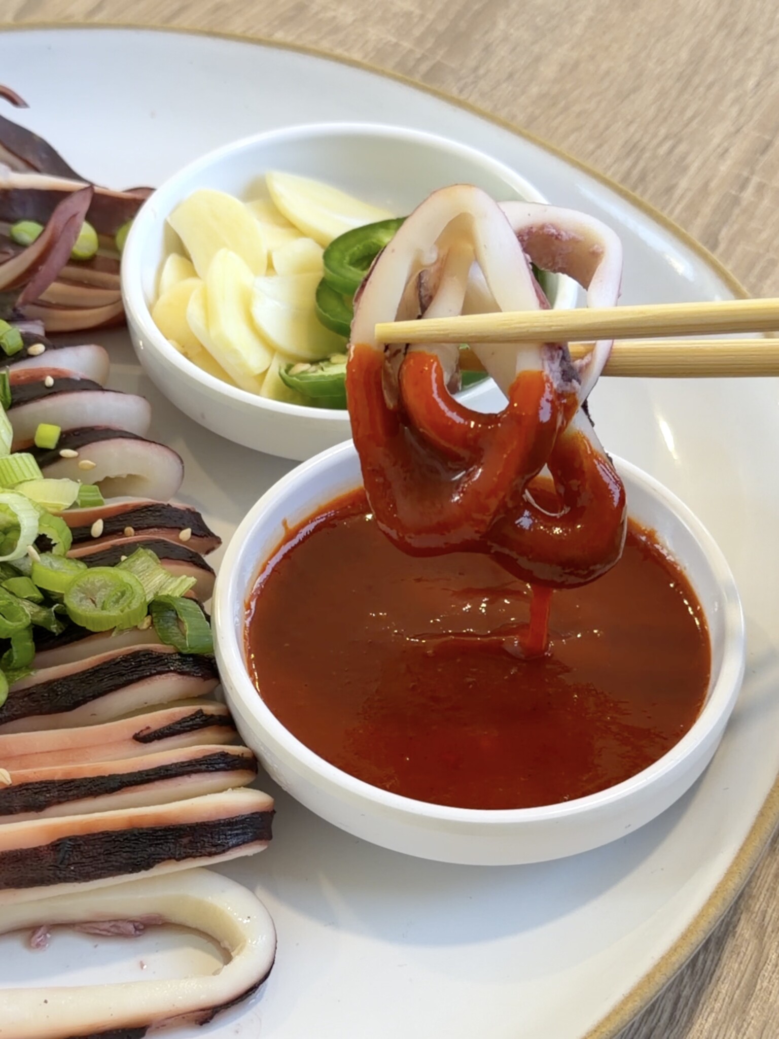 함께 주문한 Pork Bulgogi는 달콤짭조름한 양념이 고기에 잘 배어 있었고, 과하지 않은 간으로 밥과 함께 먹기 좋았다. 익숙하면서도 부담 없는 맛으로 설렁탕과 자연스럽게 어우러졌다. 여름 특선으로 나온 Young Radish Bibimbap은 아삭한 열무의 식감과 산뜻한 맛이 중심이 되었고, 살짝 더해진 양념이 전체를 가볍게 묶어주며 무겁지 않게 즐기기 좋은 구성이었다. Blanched Squid는 쫄깃한 식감이 돋보였고, 담백하게 준비되어 다른 메뉴들과 함께 곁들이기에도 무리가 없었다. Dumpling Plate는 찐만두로 속이 알차게 채워져 있었고, 부드러운 식감으로 편안하게 즐길 수 있는 메뉴였다. 튀김만두도 함께 준비되어 있어 취향에 따라 선택할 수 있다는 점도 좋았다. 각각의 메뉴가 서로 다른 결을 가지고 있어 번갈아 먹는 재미도 느껴졌다.