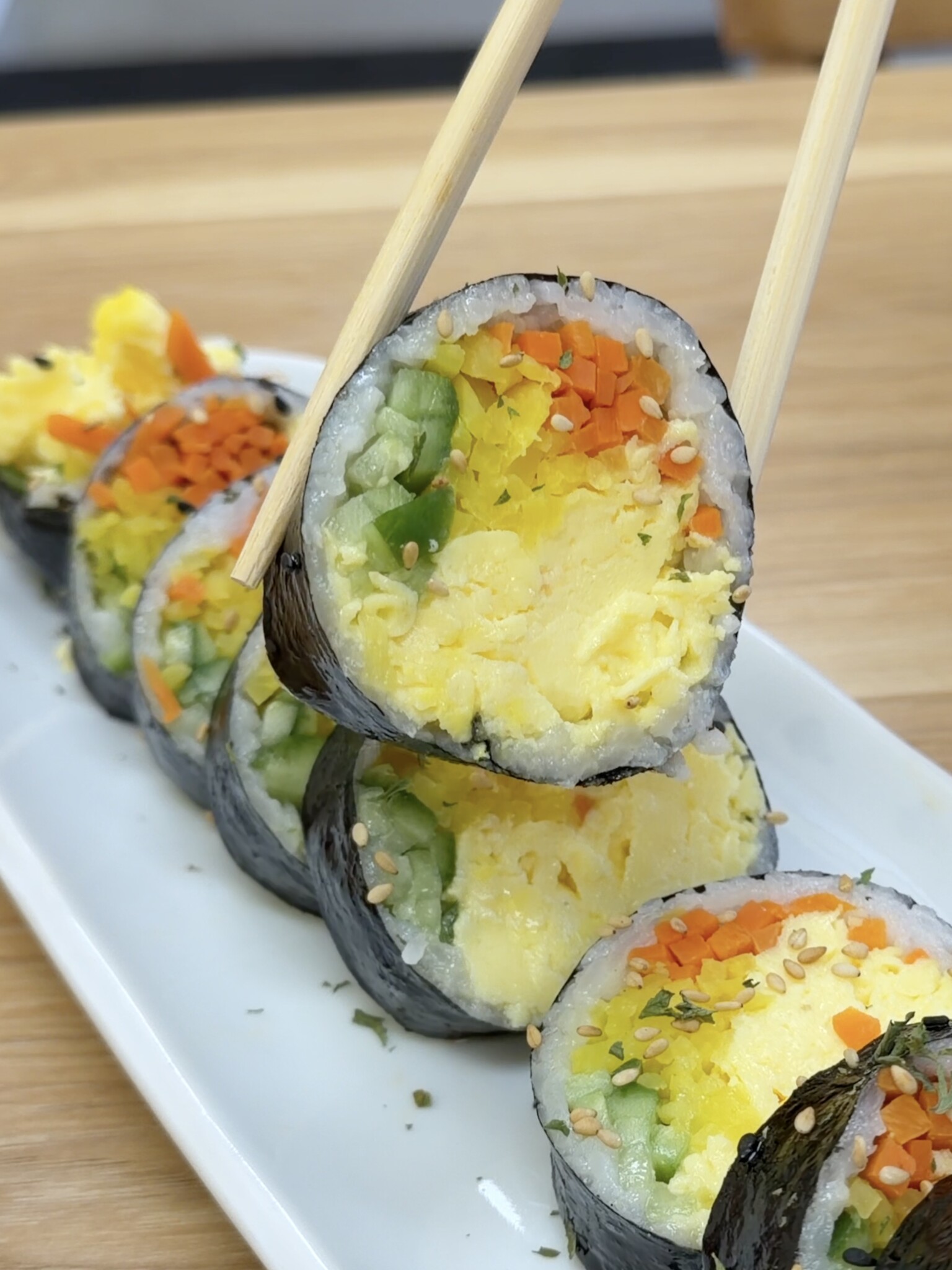 Jjimdak(Rose) & Kimbop(Egg Bomb) Combo는 전체적으로 푸짐한 구성이었다. 로제 찜닭은 크리미하면서도 매콤함이 과하지 않아 계속 손이 가는 스타일이었고, 당면과 떡, 감자, 양배추 등 다양한 속재료가 함께 들어 있어 한 접시 안에서도 식감과 맛의 변화가 느껴졌다. 닭고기는 부드럽게 익어 소스가 잘 배어 있었고, 재료들과 어우러지며 전체적인 밸런스를 잡아주었다. 함께 나온 Egg Bomb 김밥은 단면부터 시선을 끌었는데, 계란의 비중이 높아 부드럽고 고소한 맛이 중심이 되었다. 찜닭과 번갈아 먹으니 느끼함 없이 리듬감 있게 즐길 수 있었다.