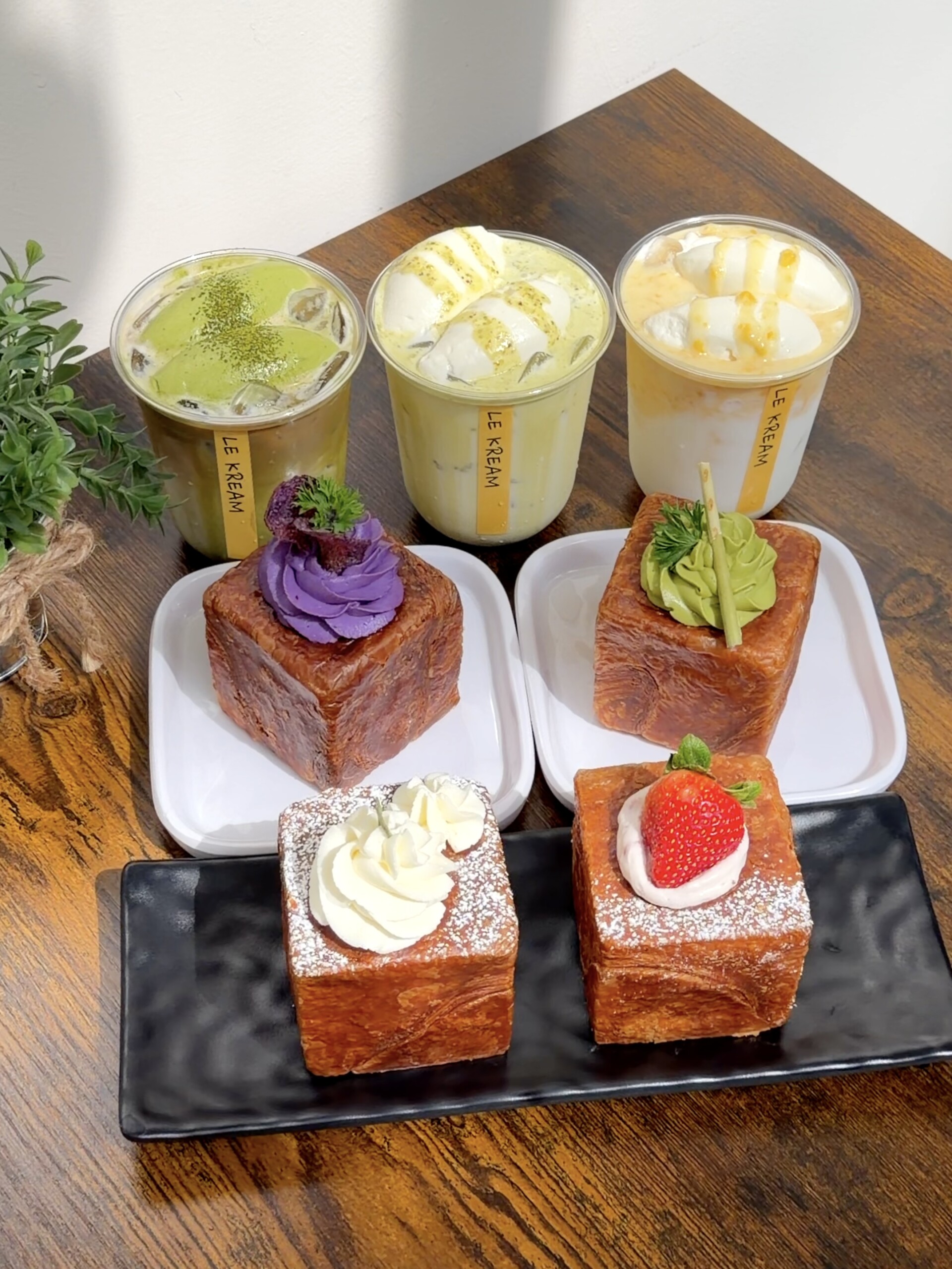 이번 방문에서는 Le Kream의 다양한 메뉴를 골라봤다. 큐브 크루아상은 Milk, Ube, Strawberry, Matcha 네 가지 맛을 선택해 각기 다른 매력을 비교해볼 수 있었고, 음료는 Dirty Matcha Kream Spanner, Pistachio Kream Spanner, Sweet Corn Kream Spanner, Green Grape Ade까지 함께 주문해 풍성하게 즐겼다. 디저트로는 Basque Cheese Cake도 곁들여, Le Kream이 가진 달콤하고 다채로운 조합을 한 자리에서 경험해볼 수 있었다.