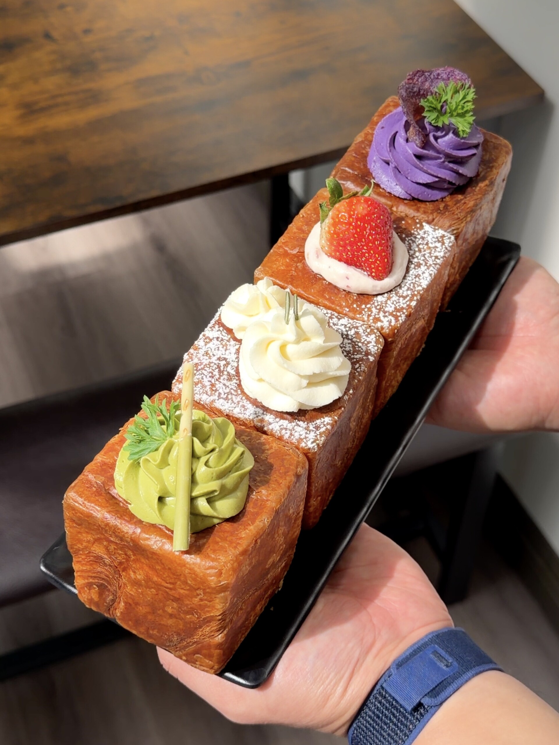 Strawberry는 상큼한 과일 향이 달콤한 크림과 어우러져 깔끔하고 대중적으로 즐기기 좋은 맛이었다. 첫맛은 상큼하고 달콤했지만 지나치게 무겁지 않아 끝까지 깔끔하게 즐길 수 있었고, 과일 특유의 산뜻함이 바삭한 크루아상과 잘 어우러졌다. Matcha는 다른 맛들에 비해 크림의 질감이 묵직해 말차 특유의 쌉싸름함이 더 진하게 살아났고, 바삭한 크루아상과 어우러지며 깊은 풍미를 전해줬다. 달콤함과 쌉싸름함이 층층이 이어져 한 입마다 여운이 남았고, 말차를 좋아한다면 꼭 추천하고 싶은 맛이었다. 네 가지 모두 각자의 매력이 있었지만, Milk와 Matcha가 특히 인상 깊었다. Milk는 기본의 담백함과 크루아상의 바삭함을 가장 잘 살려줬고, Matcha는 묵직한 크림과 쌉싸름한 풍미가 어우러져 확실히 차별화되는 맛을 보여줬다.