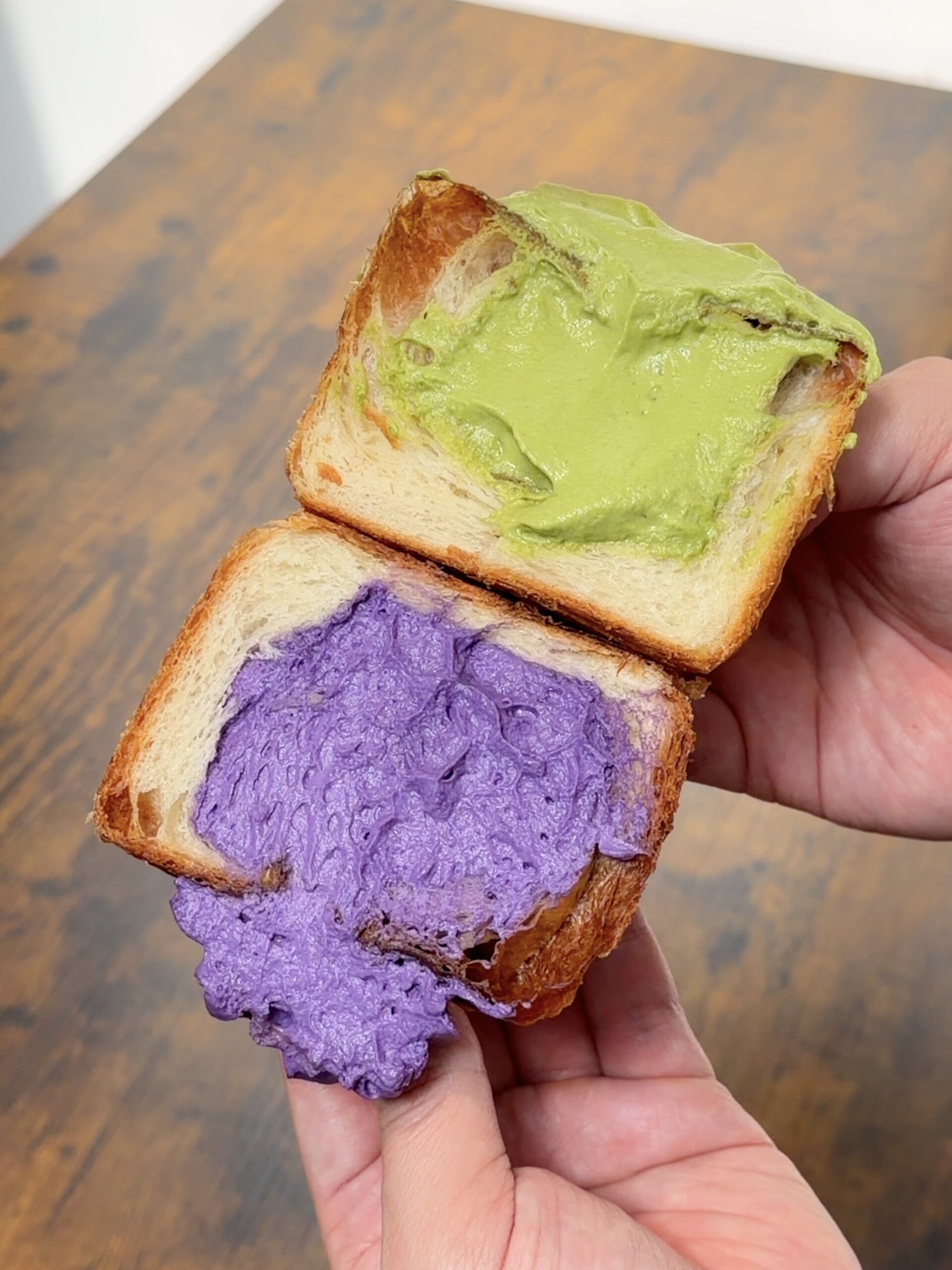 비주얼부터 기대감을 모았던 큐브 크루아상은 각 맛마다 다른 색감의 크림과 플레이팅으로 꾸며져 있어 한눈에 어떤 맛인지 알 수 있었다. 먼저 Milk는 네 가지 중 가장 기본적인 맛이었지만, 오히려 그 담백함 덕분에 크루아상의 매력이 가장 잘 드러났다. 크림은 부드럽고 은은한 연유 같은 단맛이 있어 심심하지 않으면서도 과하지 않았고, 바삭하게 층층이 갈라지는 크루아상 결과 만나 깔끔하고 조화로운 맛을 보여줬다. 첫인상은 단순해 보였지만 먹다 보니 은근히 손이 자주 갔던 메뉴로, 기본의 힘을 다시 한번 느낄 수 있었다. Ube는 보통 굉장히 단편인데 이곳은 적당히 달달하고 고소하면서도 부드럽게 퍼지는 풍미가 매력적이었고, 색감에서도 보랏빛 비주얼 덕분에 눈길을 끌어 독특한 재미가 있었다.