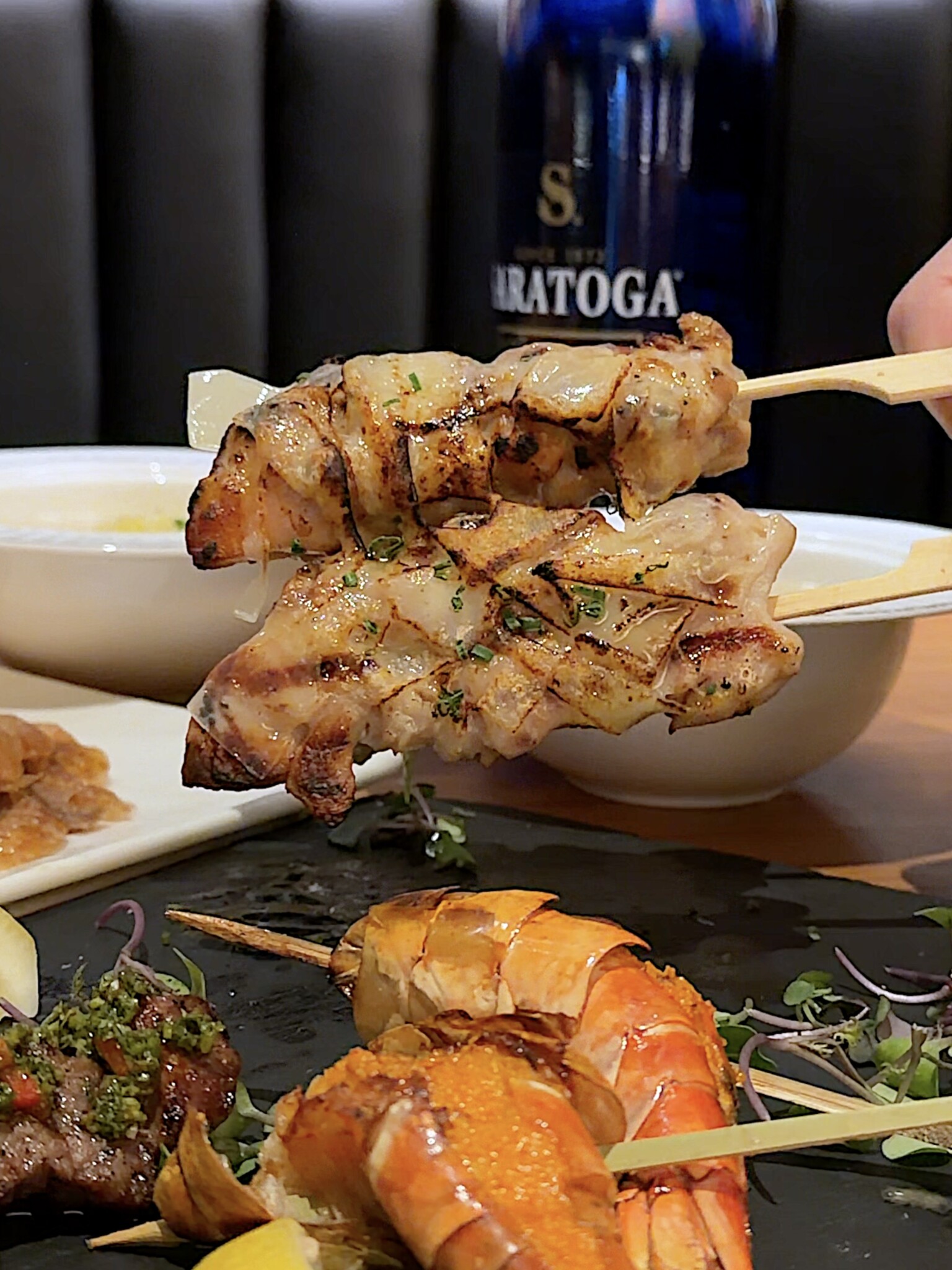 야키토리 메뉴로는 Chicken Skewer, Wagyu Skewer, Shrimp Skewer를 함께 즐겨봤다. Chicken Skewer는 촉촉하게 익어 담백하면서도 육즙이 살아 있었고, Wagyu Skewer는 한 입만으로도 고기의 고소한 풍미가 또렷하게 느껴졌다. 특히 Shrimp Skewer는 위에 올려진 명란이 포인트였다. 탱글한 새우 위로 명란의 짭조름한 감칠맛이 더해지며 한층 풍부한 맛을 만들어냈고, 해산물 특유의 깔끔함과 고급스러운 조합이 잘 어울렸다. 각 꼬치마다 개성이 분명해 메인 메뉴 사이사이에 즐기기에도 좋았다. 칵테일은 Lychee Martini와 Margarita를 함께 마셔봤는데 알콜 없이 Mocktail로도 즐길 수 있어 좋았다. Lychee Martini는 달콤하고 산뜻한 향이 부드럽게 퍼지며 식사 중간에 즐기기 좋았고, Margarita는 깔끔한 산미로 고기 요리의 풍미를 정리해주는 역할을 했다.