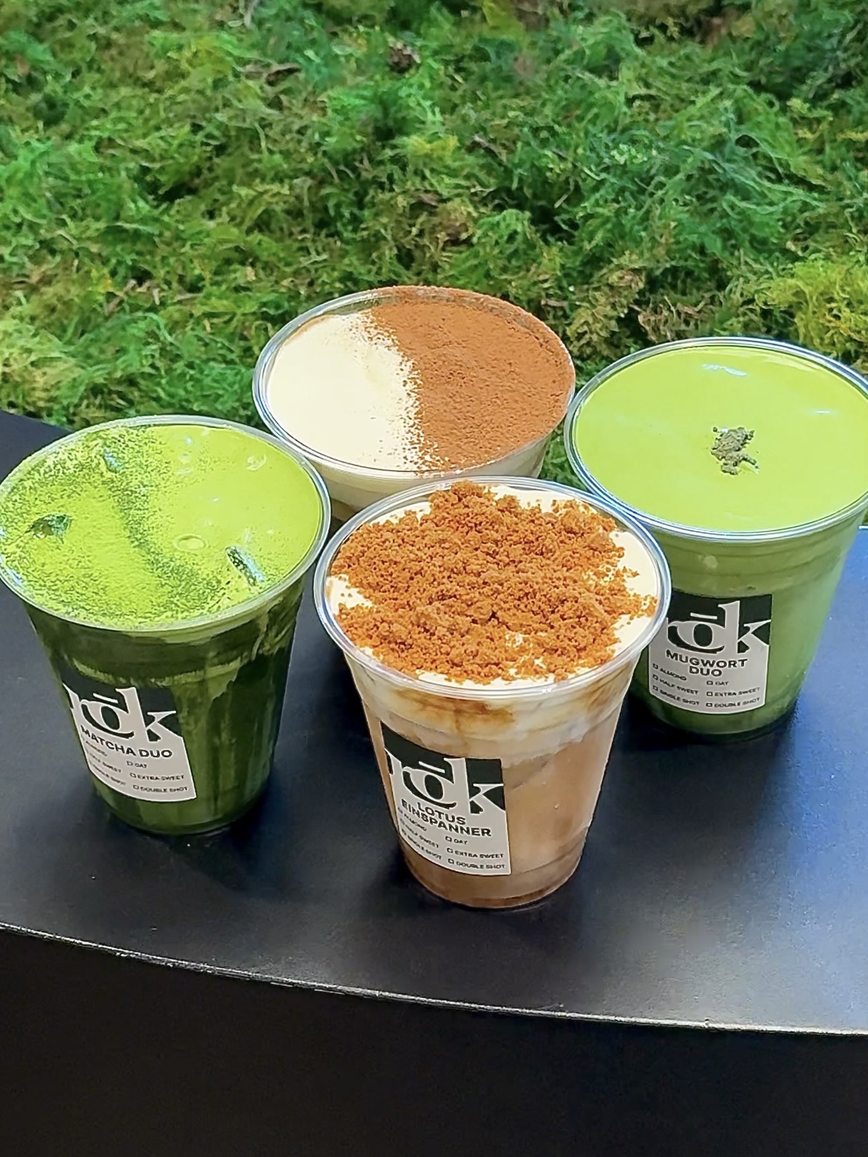 인테리어는 군더더기 없이 깔끔하면서도 감각적인 요소들이 조화를 이루고 있었다. 내부 좌석은 생각보다 넉넉하게 마련돼 있어 혼자 와도, 여럿이 함께 와도 부담 없이 머물기 좋았다. 매장 앞에는 외부 테이블도 몇 개 마련돼 있어, 날씨가 좋은 날엔 가볍게 바람을 맞으며 음료를 즐기기에도 딱 좋다. 우리는 첫 방문인 만큼 다양한 종류의 음료를 맛보고 싶어, 가장 인기 있는 Matcha Duo를 포함해 Mugwort Duo, Lotus Einspanner, Vienna까지 골라봤다.