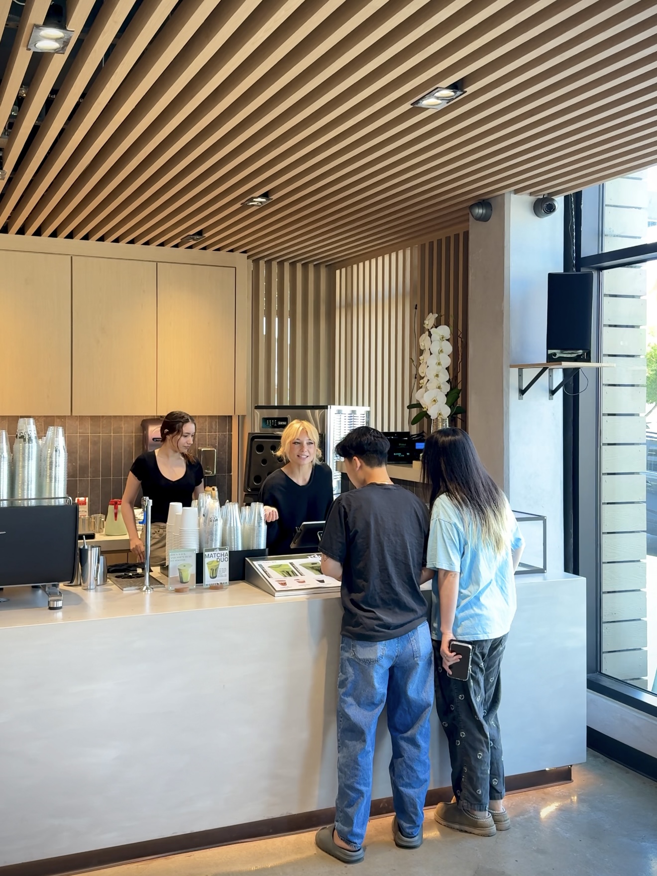 최근 Koreatown에 새롭게 문을 연 카페 Rōk은, 진한 맛의 말차를 중심으로 주목받고 있는 공간이다. 우리는 평일 오후 1시쯤 방문했는데, 비교적 한산할 거란 예상과 달리 카페 안은 이미 많은 손님들로 가득 차 있었다. 커피나 티를 즐기며 시간을 보내는 사람들, 노트북을 펼치고 작업 중인 사람들까지 다양한 모습이 눈에 띄었고, 그만큼 이곳이 이미 입소문을 타고 있다는 느낌을 받았다.