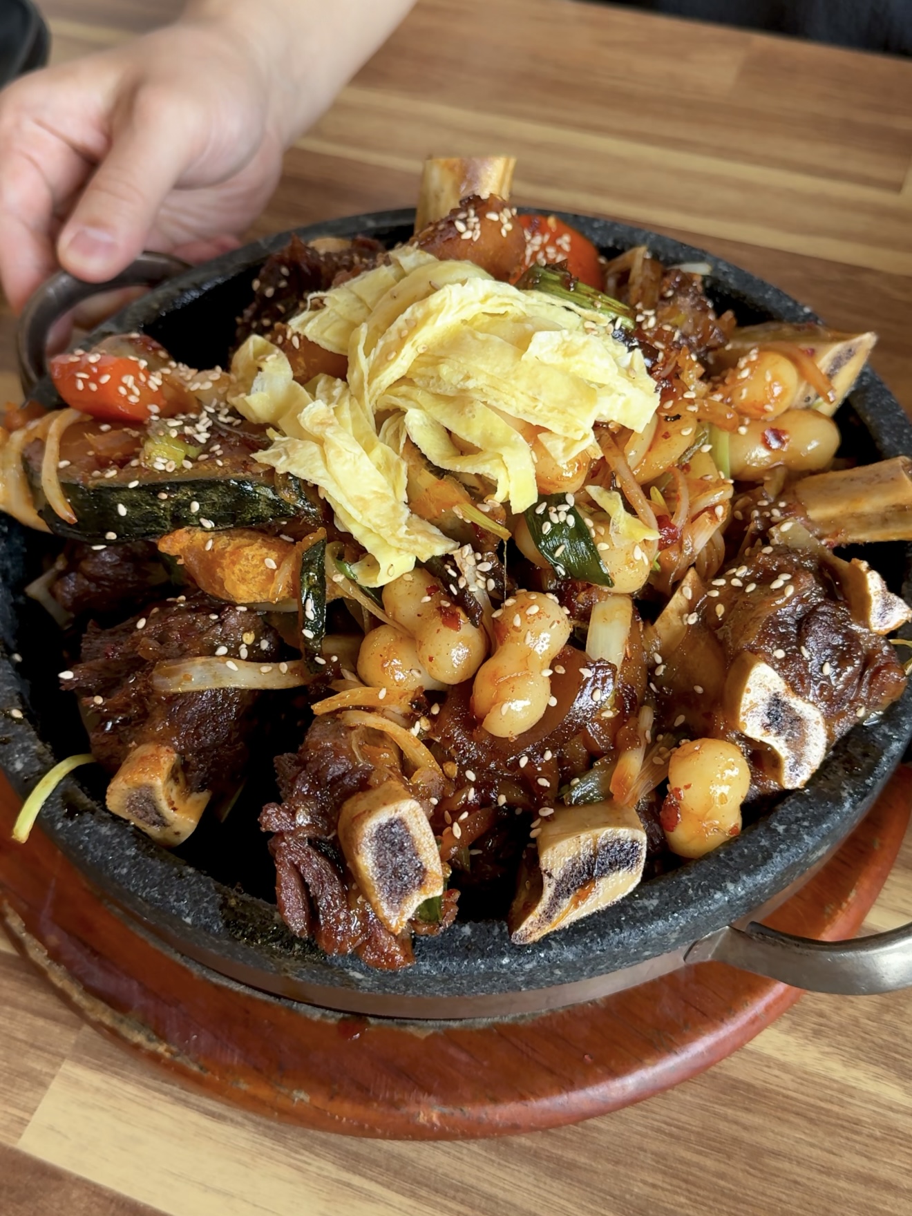 갈비찜은 비주얼부터 시선을 사로잡는 메뉴로, 보기만 해도 군침이 돌았다. 우리는 맵기 정도를 medium으로 선택했는데, 걱정했던 것보다 자극적이지 않고 은은하게 매콤해 부담 없이 즐길 수 있었다. 평소 매운 음식을 좋아한다면 한 단계 더 매운 맛으로 선택해도 괜찮을 듯하다. 양념은 진한 편이지만 단맛이 과하지 않아 고기의 풍미를 잘 살려줬고, 뒷맛도 깔끔해서 끝까지 질리지 않았다. 갈비는 부드럽게 잘 익어 젓가락으로도 쉽게 발라졌으며, 함께 들어 있던 야채와 떡에도 양념이 고루 배어 있어 마지막까지 맛있게 즐길 수 있었다.