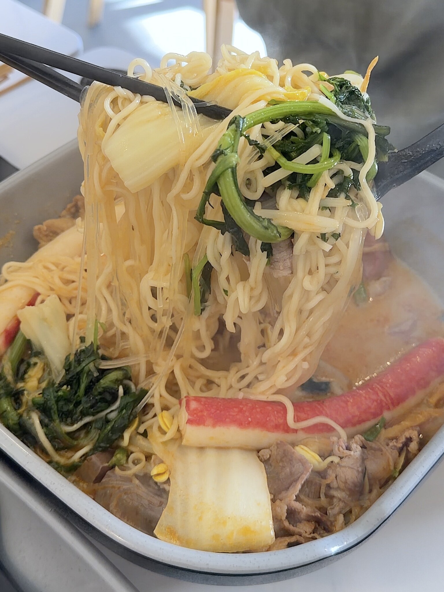 YGF Malatang은 원하는 재료를 직접 골라 나만의 한 그릇을 완성하는 마라탕 전문점이다. 매장에 들어서면 진열대에 깔끔하게 정리된 각종 채소, 고기, 해산물, 면류가 눈에 띄고, 접시에 먹고 싶은 재료를 담아 무게에 따라 계산하는 방식이라 선택의 폭이 넓다. 국물의 맵기와 종류도 고를 수 있어 취향에 맞게 조합하는 재미가 있었다. 우리는 Chino Hills 지점에 오픈 시간에 방문했는데, 문을 열자마자 마라탕을 즐기러 온 손님들이 빠르게 자리를 채우는 모습을 보며 이곳의 인기를 실감할 수 있었다.